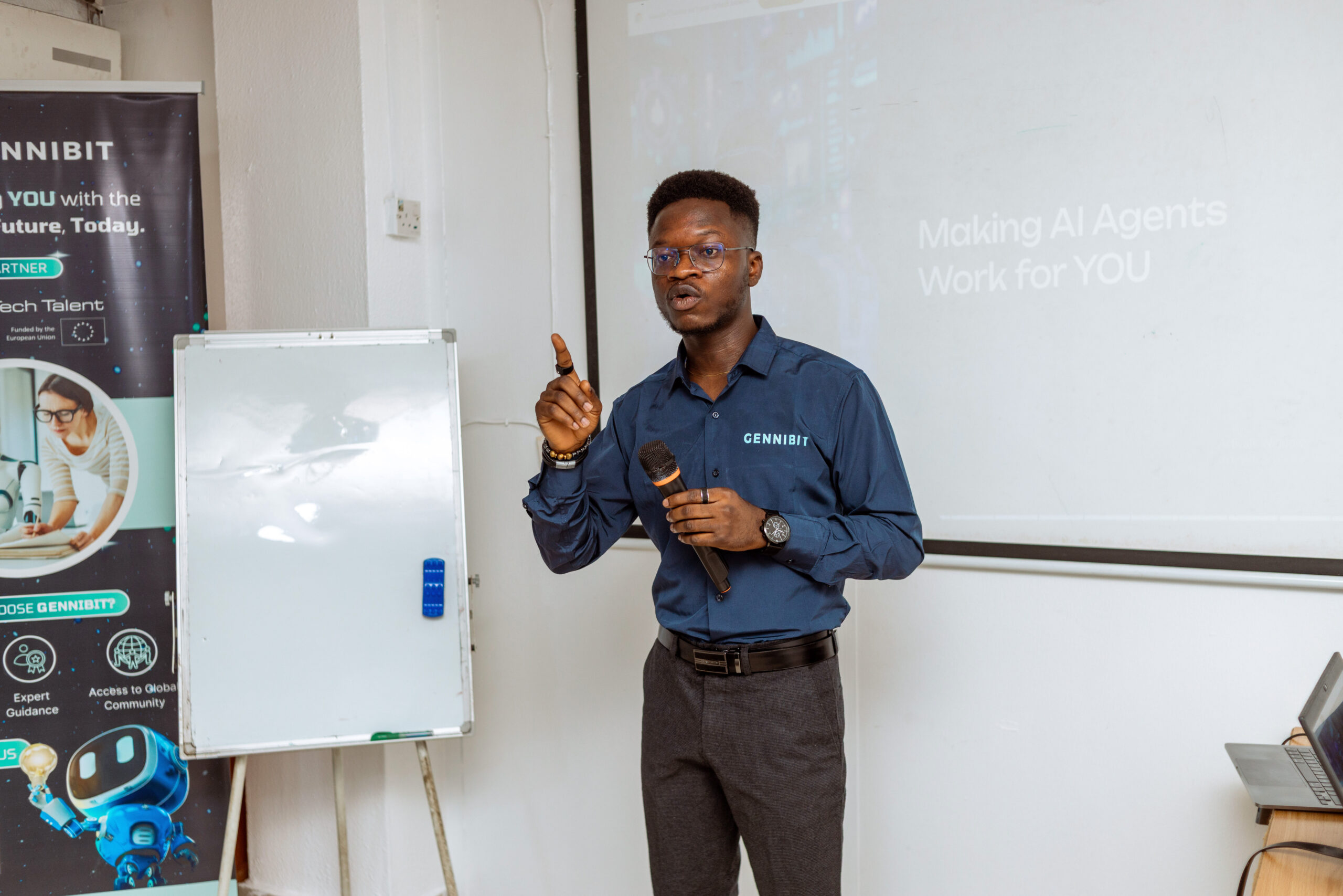 May 10th, 2025 marked GenniBit's first in-person AI Meetup in Lagos, Nigeria. This event focused on bringing AI literacy to life through hands-on workshops on AI agents, discussions on AI ethics, and project showcases. It addressed the gap between AI awareness and confident usage, reinforcing GenniBit's mission to provide practical AI education for all. The Generative AI LaunchPad program, approved by the EIT Deep Tech Talent Initiative, was also highlighted as a key response to this need.